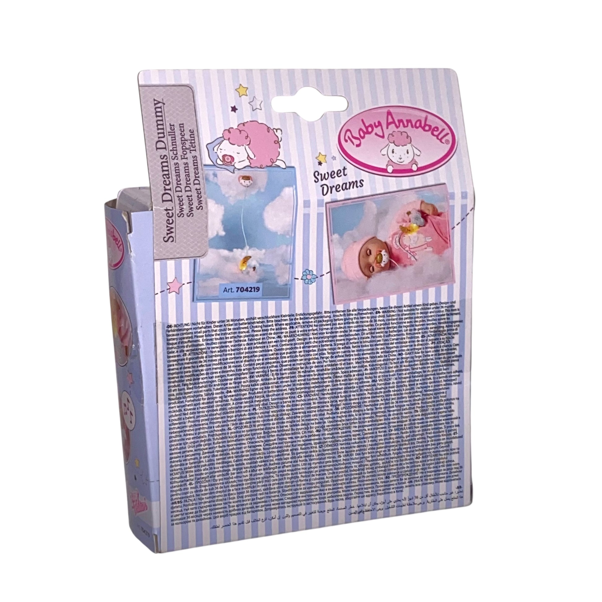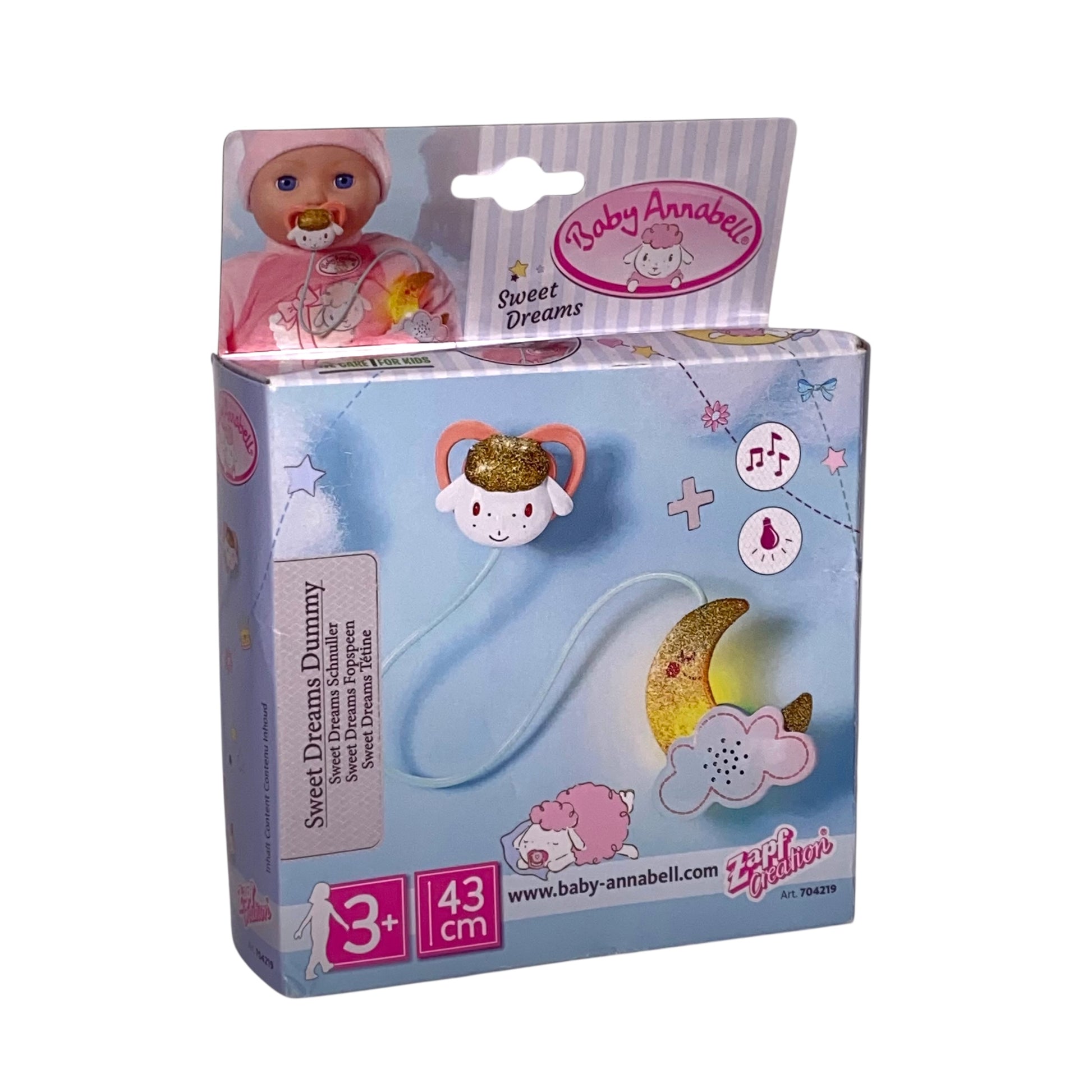 Der Baby Annabell Sweet Dreams Schnuller ist die perfekte Kombination aus Beruhigung und stilvollem Design. Mit seiner einzigartigen Licht- und Soundfunktion schafft er eine angenehme Atmosphäre, die Ihr Baby sanft in den Schlaf wiegt. Das ansprechende Farbkonzept in Weiß und Gold macht diesen Schnuller nicht nur funktional, sondern auch zu einem hübschen Accessoire.