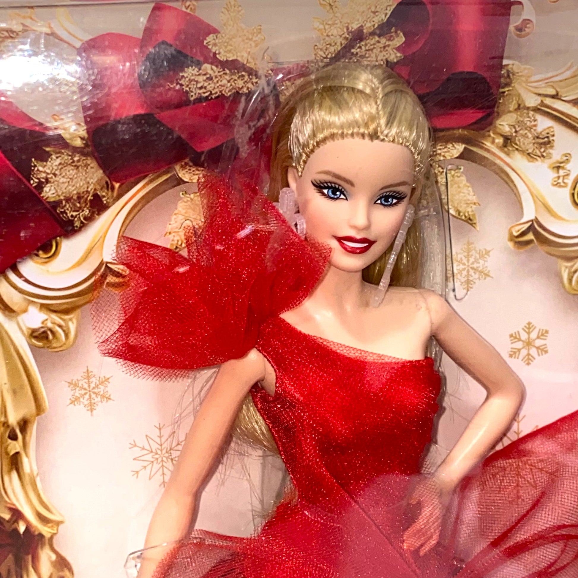 Limitierte Barbie Holiday 2024 – elegantes Sammlerstück mit rotem Kleid, kariertem Rock und festlichen Details.