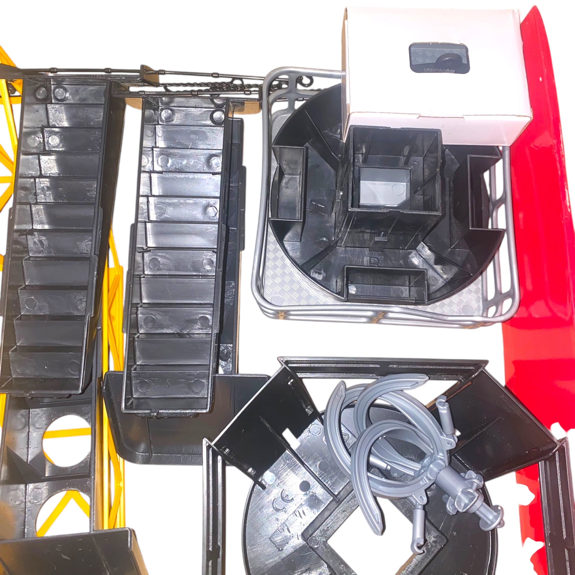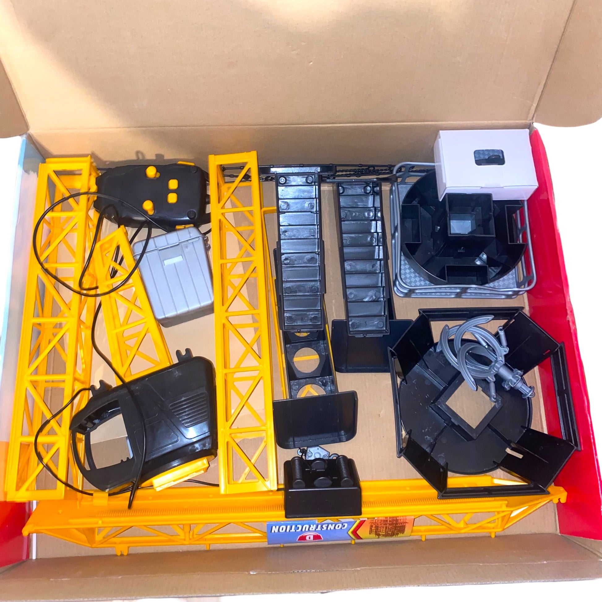 Maße: 120 cm Höhe. Funktionen: 350° drehbar, Seilwinde, Greifarm, Lastentrage.